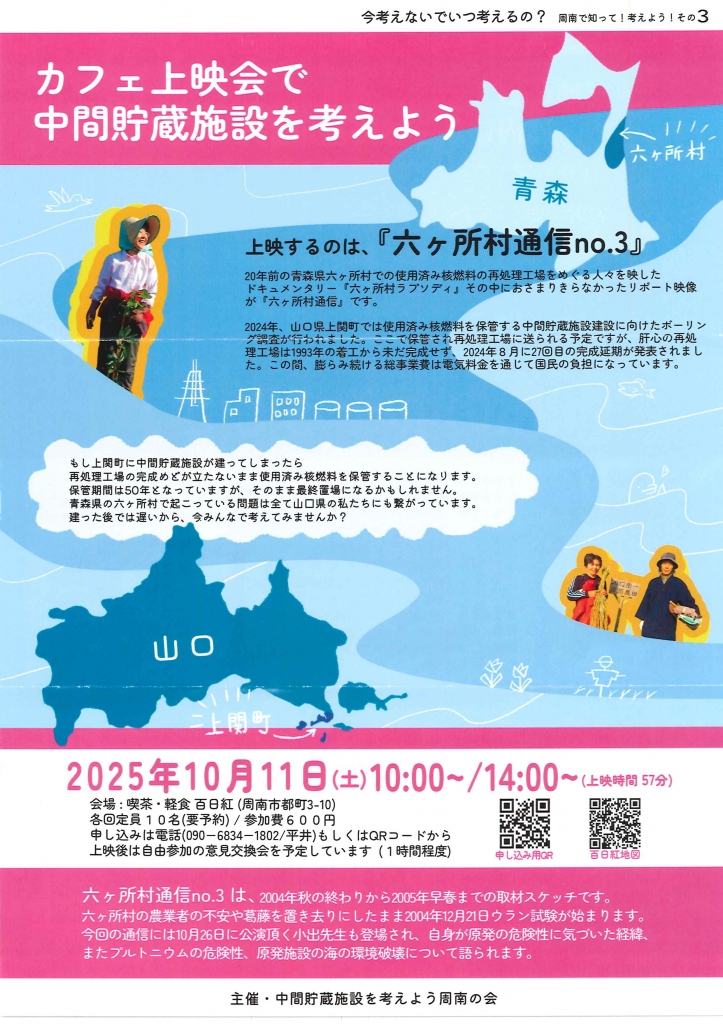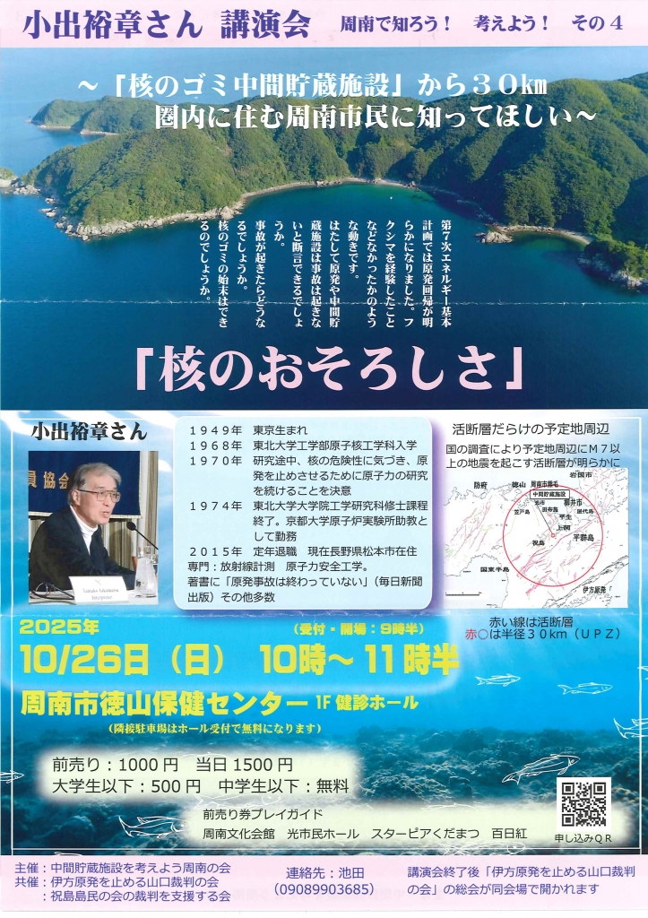 10月15日(水)午後6時開場、開会午後6時半~8時半